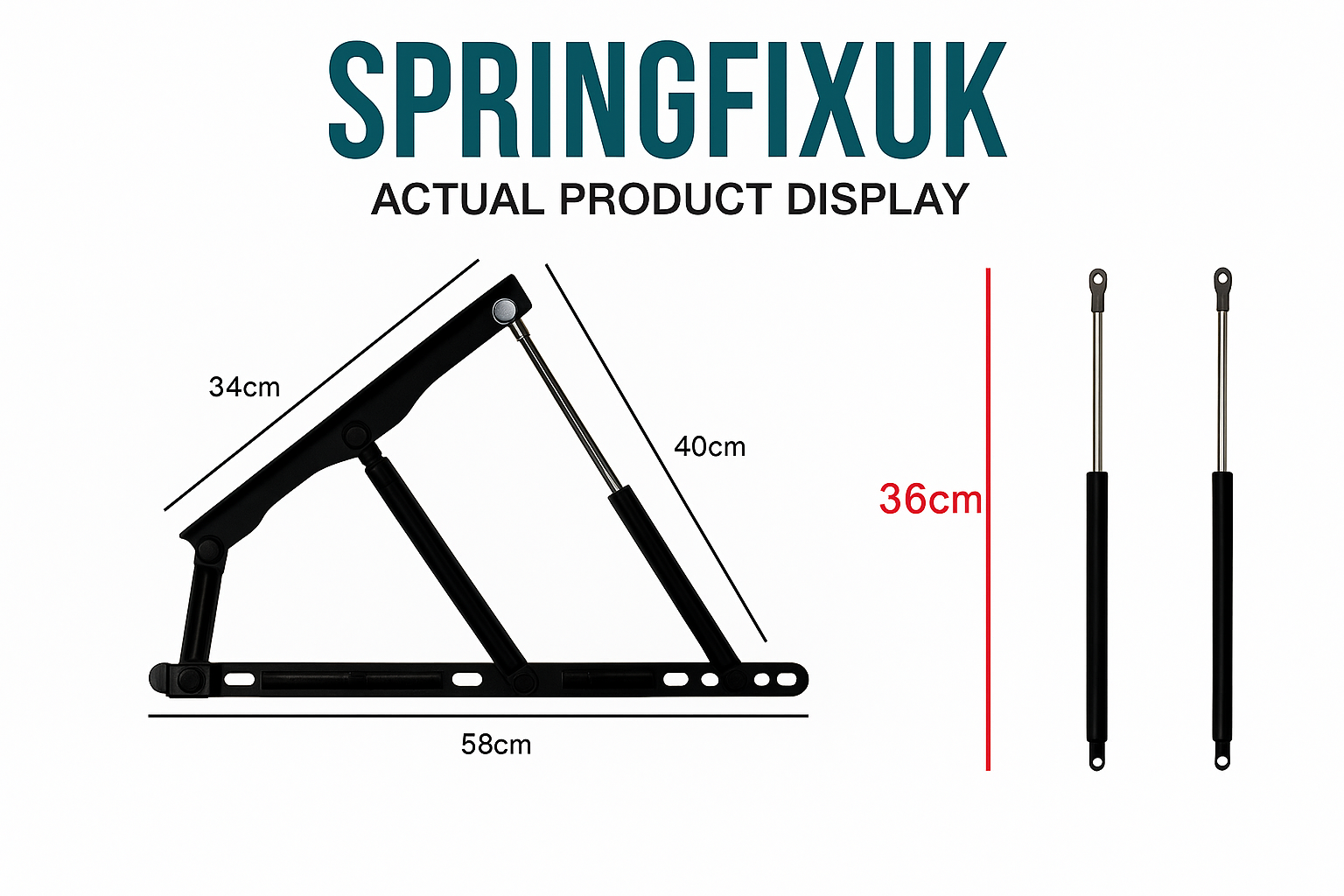 Upgrade your ottoman bed with this complete lift-up mechanism set, including 2x heavy-duty 1200N gas struts and durable hinge brackets. Designed for smooth, controlled lifting, this set provides safe and effortless access to under-bed storage.