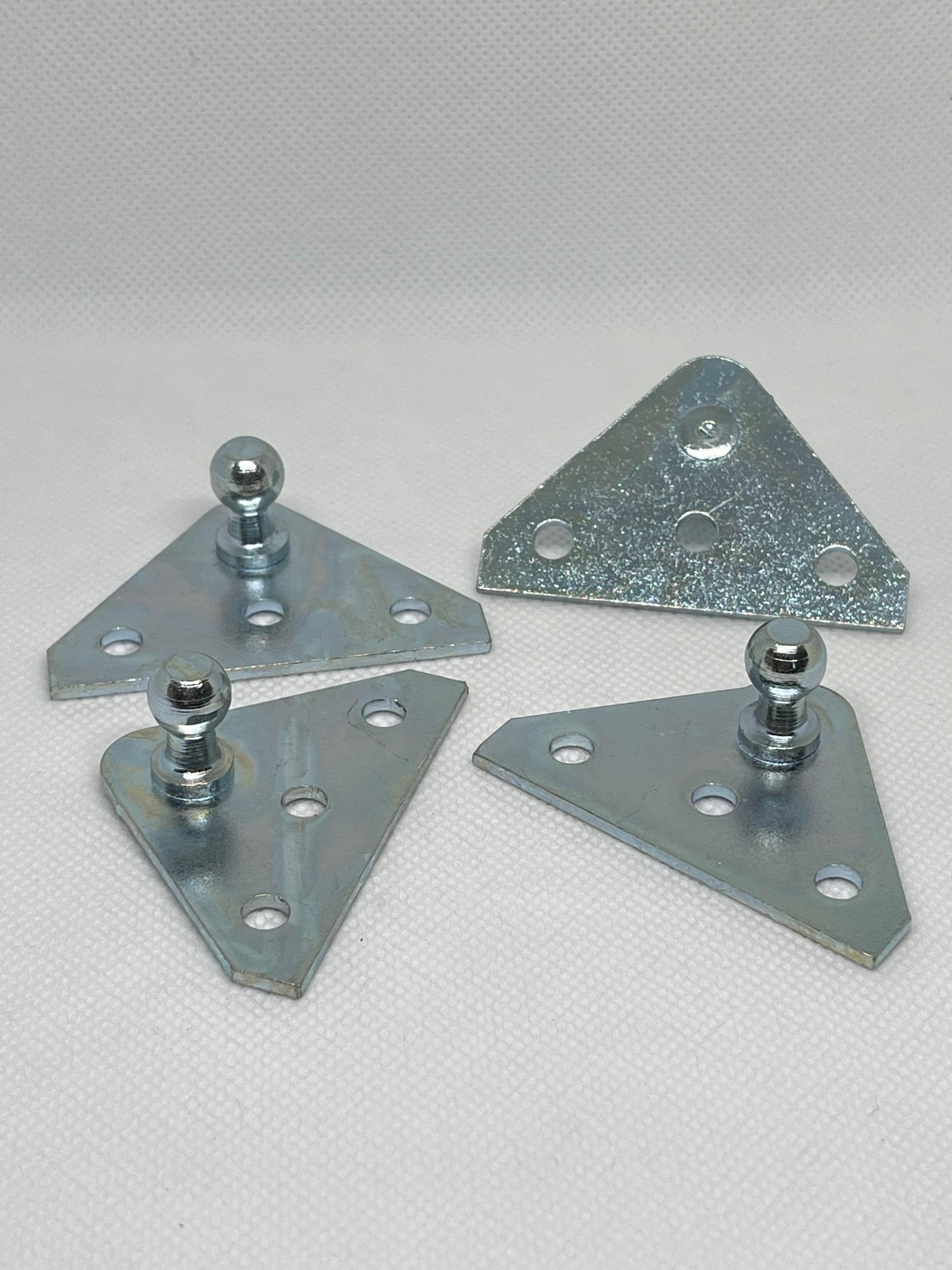 Each bracket is made from high-strength zinc-plated steel and fitted with a 10 mm ball stud (Form B) for secure, vibration-resistant attachment.