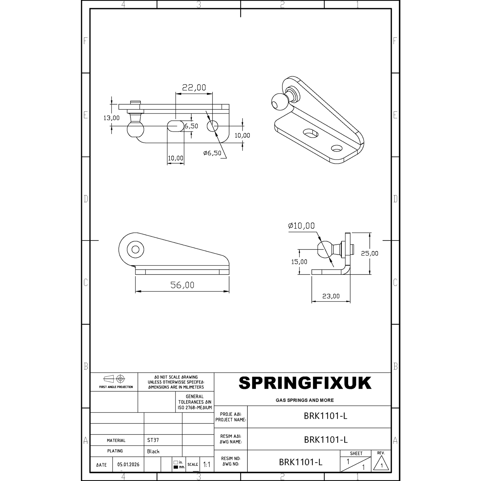 2x 10mm Gas Strut Bracket – Left Hand Ball Stud (Black)