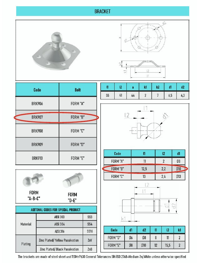 • Type: Gas strut mounting brackets – 10mm ball stud connection