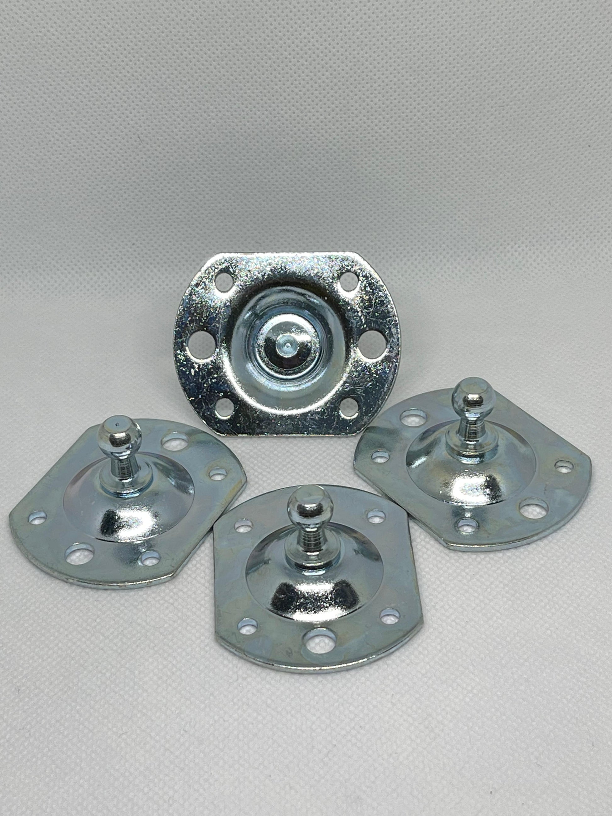 Each bracket is made from high-strength zinc-plated steel, featuring a 10mm ball stud compatible with standard gas struts used in car boots, hatches, cabinets, and machinery panels.